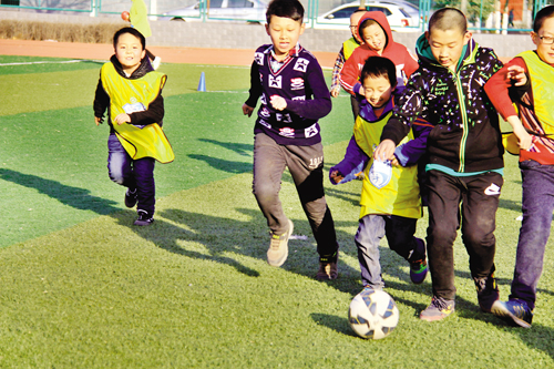 3月12日,原平農(nóng)校足球場(chǎng)內(nèi),小球迷正在進(jìn)行對(duì)抗訓(xùn)練。從小培養(yǎng)兒童熱愛(ài)運(yùn)動(dòng),熱愛(ài)足球,已成為時(shí)下一種教育理念。周末節(jié)假日兒童不再上各種培訓(xùn)班,踢足球,增體質(zhì),堅(jiān)定自信心,已成為一種習(xí)慣:我運(yùn)動(dòng),我健康,我是最棒的?。ㄆ?攝)