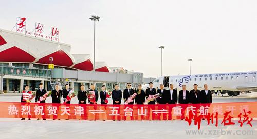 3月27日下午17時左右,由華夏航空公司CRJ900型飛機執(zhí)飛的G52785航班降落在五臺山機場,這標(biāo)志著天津—五臺山—重慶航線正式開通,首航航班往返客座率均超過95%。該航線每周4班,周一、三、五、日各往返飛行一班。重慶—五臺山—天津時刻為:重慶14時45分起飛,17時05分抵達(dá)五臺山機場,18時55分從五臺山起飛,19時35分抵達(dá)天津;天津—五臺山—重慶時刻為:天津20時30分起飛,21時20分抵達(dá)五臺山機場,22時00分從五臺山機場起飛,00時15分抵達(dá)重慶。另外,??凇迮_山的航線從3月27日起調(diào)整為??凇鹆帧迮_山。(趙夢嬌 攝)
