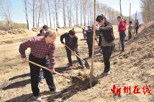 4月8日上午,代縣縣委書記田永清在主持召開了全縣換屆風(fēng)氣專項(xiàng)督導(dǎo)會(huì)議之后,立刻趕赴新高鄉(xiāng)河頭村村西的中解河畔,投入到了全體村民義務(wù)植樹的活動(dòng)中去,既揮鍬挖坑栽樹,又提水澆灌,還不時(shí)用鍬把將所栽樹株蹾實(shí),確保樹株成活。