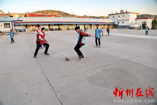 隨著《中國足球改革發(fā)展總體方案》的出臺(tái),靜樂縣將足球作為學(xué)校體育課必修內(nèi)容,以加快推進(jìn)校園足球運(yùn)動(dòng)全面開展。圖為該縣利民小學(xué)足球興趣班學(xué)生在放學(xué)后踢足球的場景。(閆曉梅 攝)