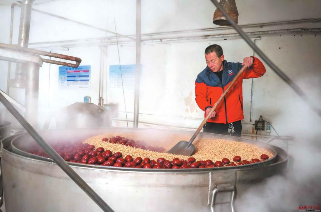 近年來,保德縣貢棗酒開發(fā)基地以“保德油棗”與枸杞入酒,不僅更好地保留了果實的溫補特性,也釀出了獨特的地方風(fēng)味。該基地不僅是當(dāng)?shù)赝苿蛹t棗產(chǎn)業(yè)深加工、提升附加值的關(guān)鍵項目,也是將地理標(biāo)志農(nóng)產(chǎn)品轉(zhuǎn)化為特色商品、助力鄉(xiāng)村振興的生動實踐。圖為保德縣貢棗酒基地,工人在蒸餾車間翻動攪拌麥殼與紅棗等原料,車間內(nèi)蒸汽彌漫。(記者 范琛攝) (責(zé)任編輯:盧相?。?/span> |