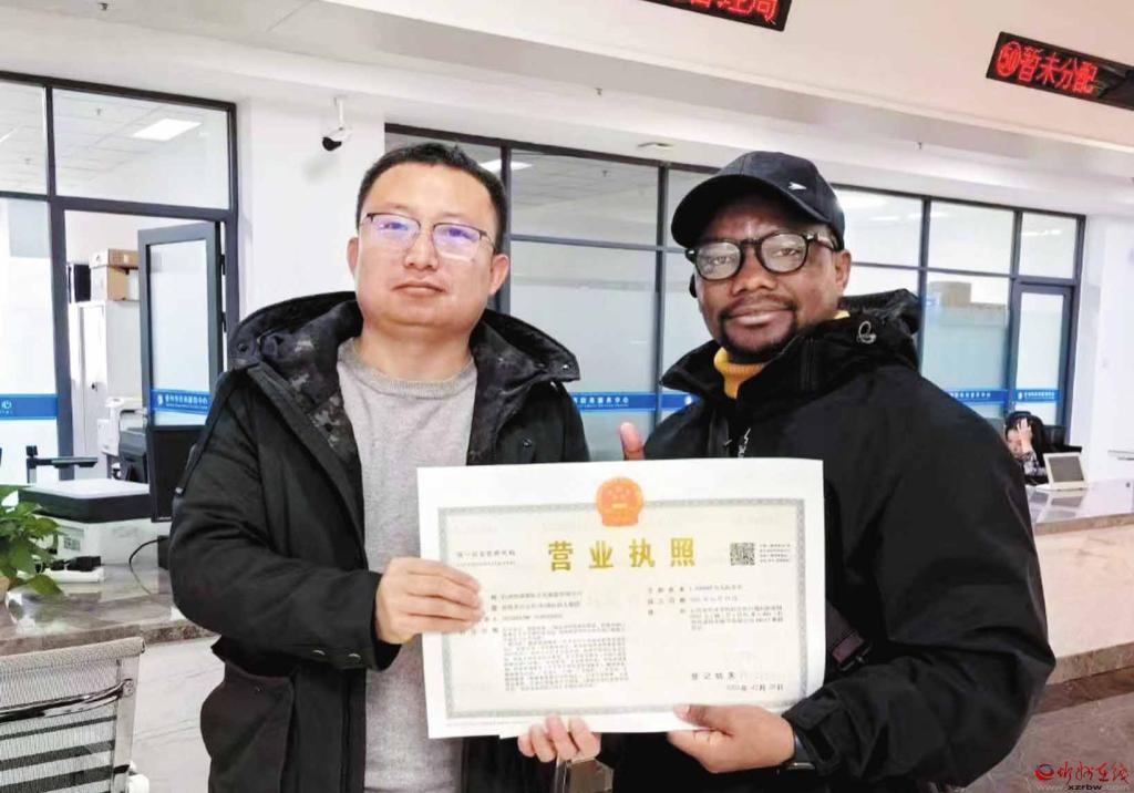 據(jù)了解,自獲悉Ininahazwe ilde-phonse來忻創(chuàng)業(yè)的意向后,市市場(chǎng)監(jiān)督管理局外資登記窗口便提供了全程幫辦服務(wù)。工作人員針對(duì)外國投資者可能遇到的語言、政策不熟悉等困難,主動(dòng)進(jìn)行“一對(duì)一”指導(dǎo),協(xié)助其完成從材料準(zhǔn)備到系統(tǒng)申報(bào)的全流程。圖為Ininahazwe ildephonse拿到營業(yè)執(zhí)照后,對(duì)工作人員的熱情服務(wù)豎起了大拇指。(本報(bào)通訊員攝)