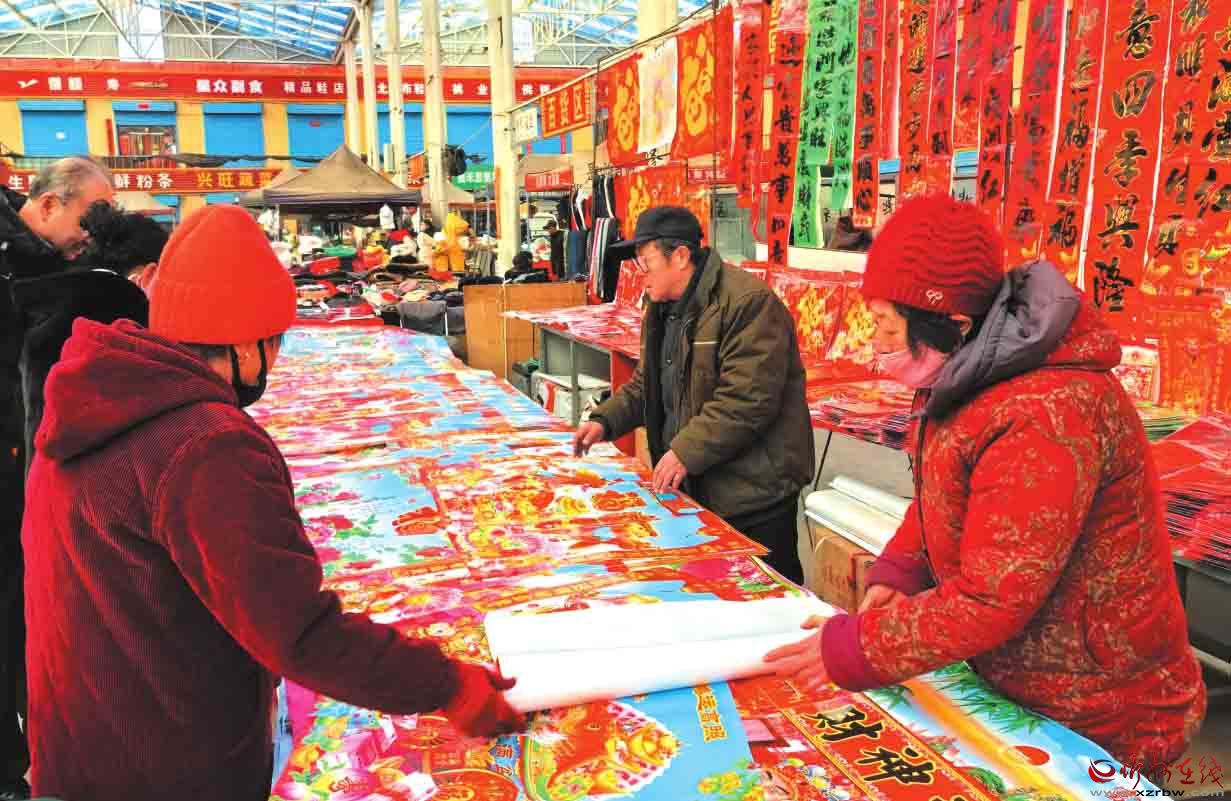 春節(jié)臨近,神池縣集貿(mào)市場(chǎng)迎來(lái)購(gòu)銷兩旺的高峰期,處處洋溢著喜慶祥和的節(jié)日氛圍。圖為春聯(lián)年畫(huà)攤位前,市民正在精心挑選心儀的年貨。(鄭志東 攝)