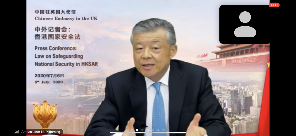 中國駐英國大使劉曉明當(dāng)天在中國駐英大使館舉行在線視頻中外記者會,就香港國安法闡述中國政府立場。劉大使表示,國安立法從國家層面立法建立健全香港維護(hù)國家安全的法律制度和執(zhí)行機(jī)制,得人心、順民意,勢在必行、刻不容緩。