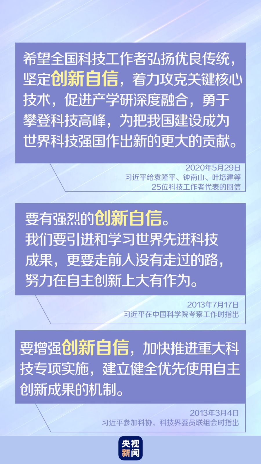 今年“全國科技工作者日”到來之際,習(xí)近平給25位科技工作者代表回信,再次強調(diào)“堅定創(chuàng)新自信”,勉勵廣大科技工作者為把我國建設(shè)成為世界科技強國作出新的更大的貢獻。