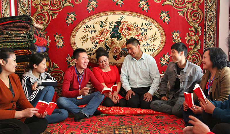 △達(dá)西村村民在聆聽(tīng)駐村工作隊(duì)隊(duì)員宣講黨的好政策。