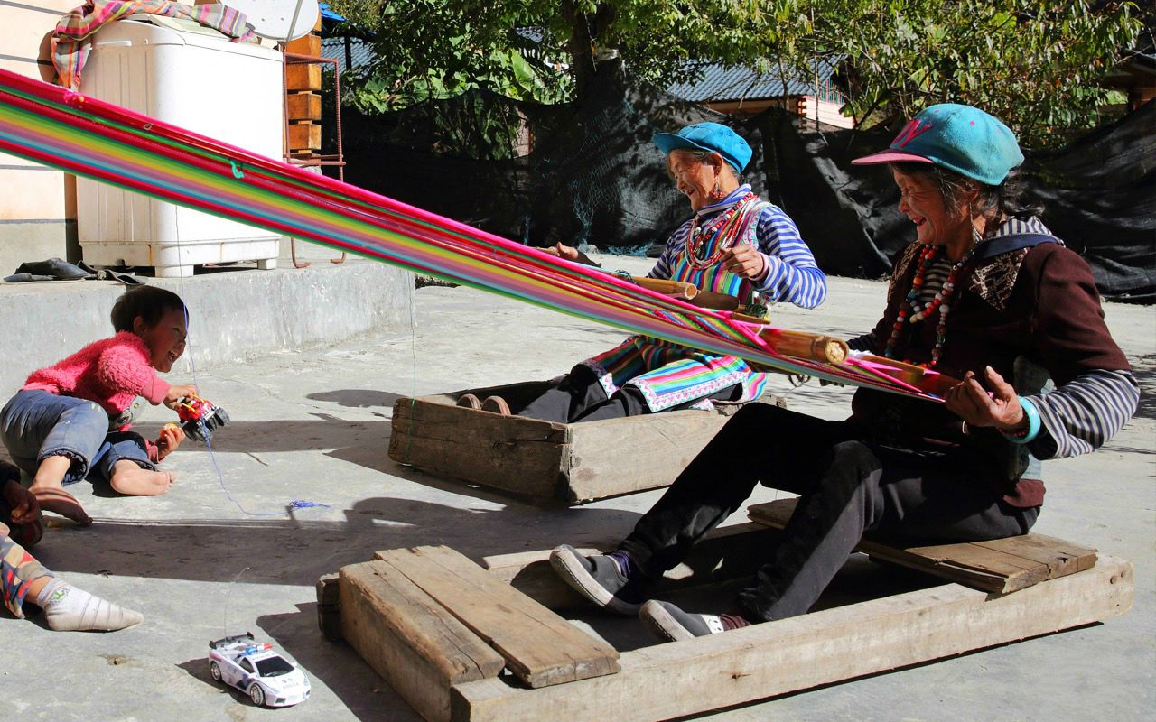 △獨(dú)龍族紋面女在織當(dāng)?shù)靥赜械莫?dú)龍?zhí)骸?/span>