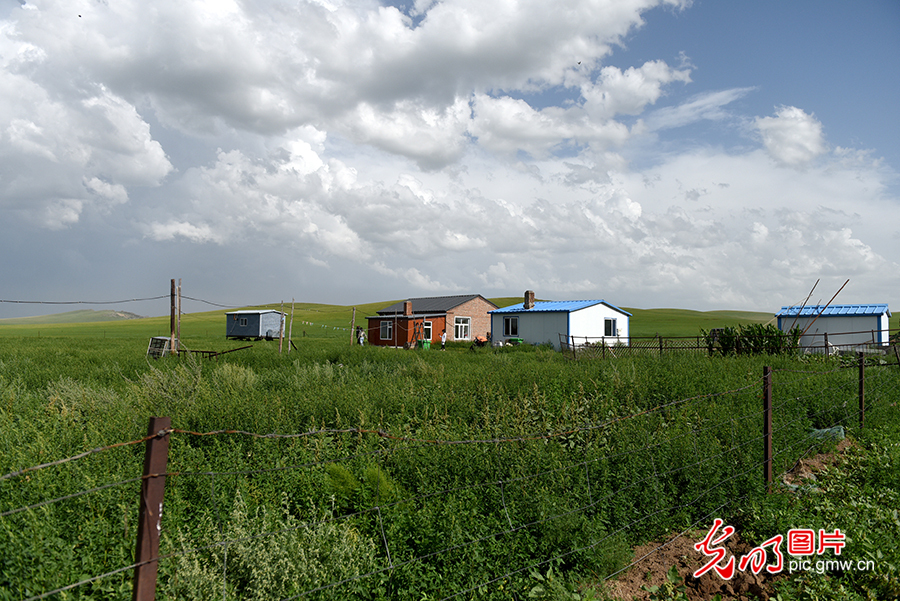 在其日麥拉圖家附近還有三所小房子,這是其日麥拉圖給自己的三個(gè)兒子準(zhǔn)備的?!皟鹤觽兌荚谄炖镔I了新房子、新車子,有時(shí)候也會(huì)帶著兒媳婦、孫子來牧場,和我們一起養(yǎng)牛、養(yǎng)馬?!眻D為2020年8月2日,其日麥拉圖家。(潘迪攝/光明圖片)