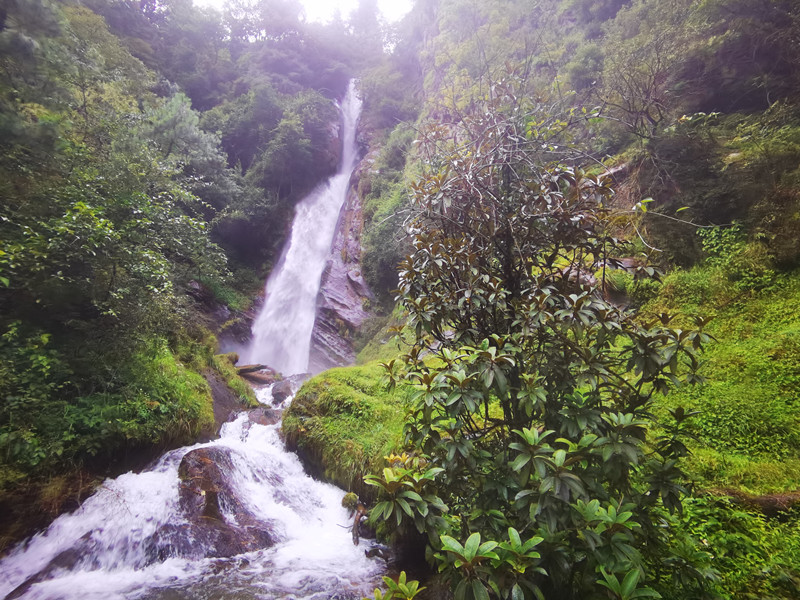 山間時(shí)有瀑布濺起水花,淌成潺潺的清澈溪水。你甚至能看到野生猴子出沒(méi)于公路兩旁,牦牛走在路邊,悠悠然地目送著一輛輛汽車(chē)離開(kāi)。