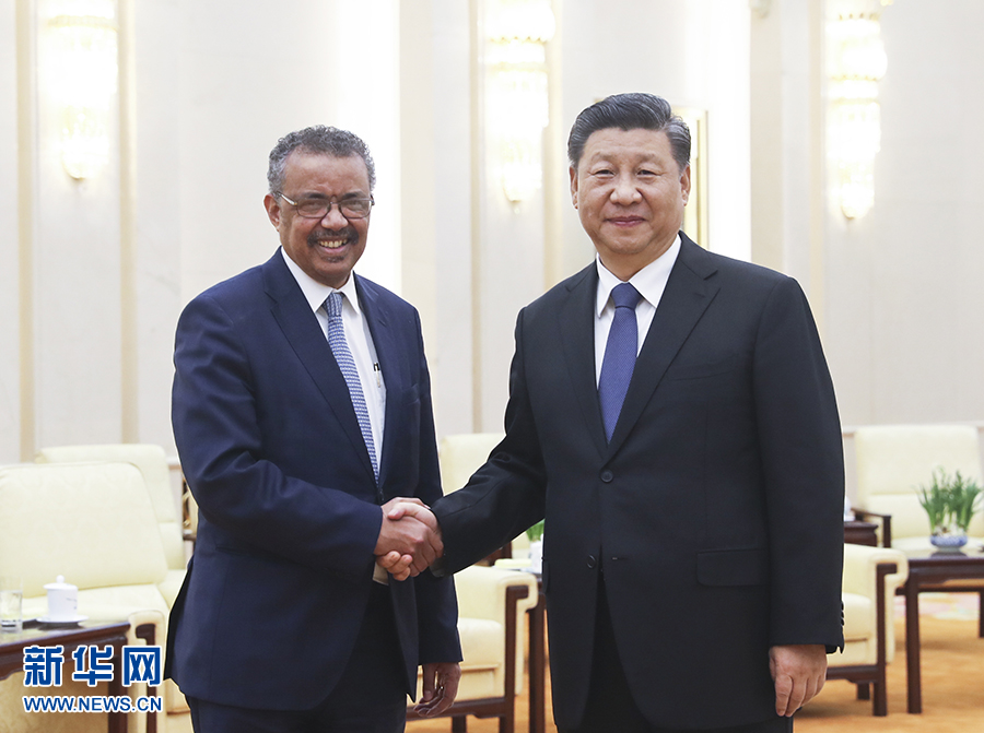 1月28日,習近平在北京人民大會堂會見世界衛(wèi)生組織總干事譚德塞。 新華社記者 鞠鵬 攝