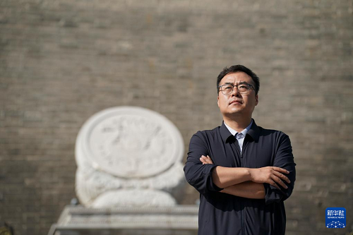趙彬在西安城墻永寧門內(2025年9月12日攝)。(新華社記者 邵瑞 攝)