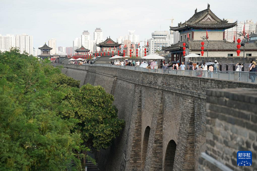 西安城墻南段東側景色(2025年9月12日攝)。(新華社記者 邵瑞 攝)