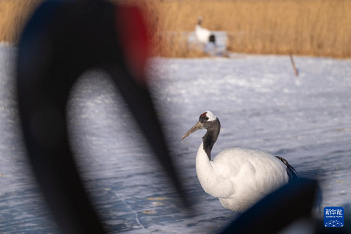 這是1月21日拍攝的黑龍江扎龍國家級(jí)自然保護(hù)區(qū)內(nèi)的丹頂鶴。(新華社記者 張濤 攝)