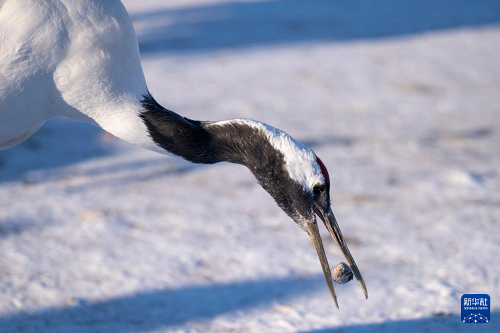 冬日時(shí)節(jié),黑龍江扎龍國家級(jí)自然保護(hù)區(qū)內(nèi)白雪皚皚,丹頂鶴在寒風(fēng)中覓食,上演一幅鶴舞冬日的純凈畫面。