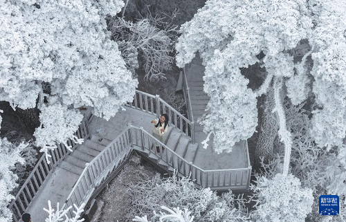 1月22日,游客在湖南省衡陽(yáng)市南岳衡山風(fēng)景區(qū)賞景游玩。(新華社發(fā) 曹正平 攝)