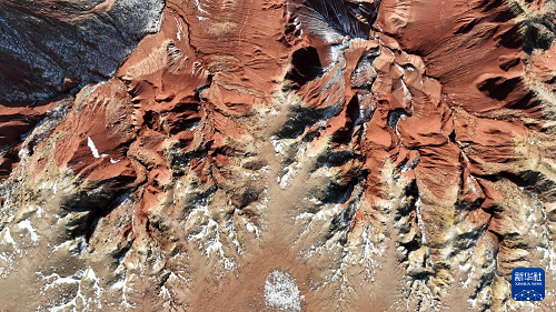 這是1月29日在內蒙古烏蘭察布市四子王旗拍攝的紅崖臺地景觀(無人機照片)。(新華社記者 貝赫 攝)