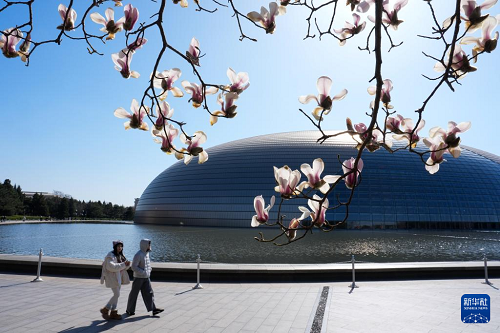 國家大劇院旁玉蘭花盛開(3月9日攝)。(新華社記者 鞠煥宗 攝)