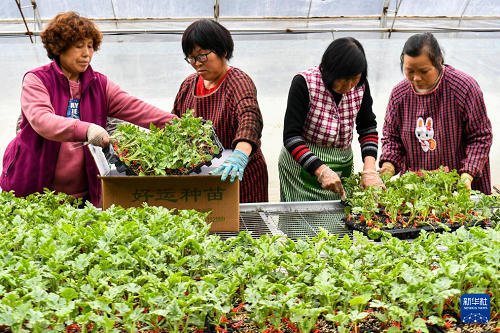 3月18日,山西省運城市夏縣廟前鎮(zhèn)楊村的村民將嫁接好的西瓜苗打包。(新華社記者 曹陽 攝)