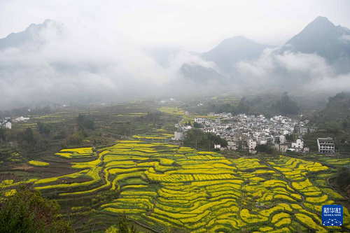 眼下,安徽省宣城市績(jī)溪縣家朋鄉(xiāng)幸福村的油菜花田進(jìn)入盛花期,大批游客來此踏青賞花。