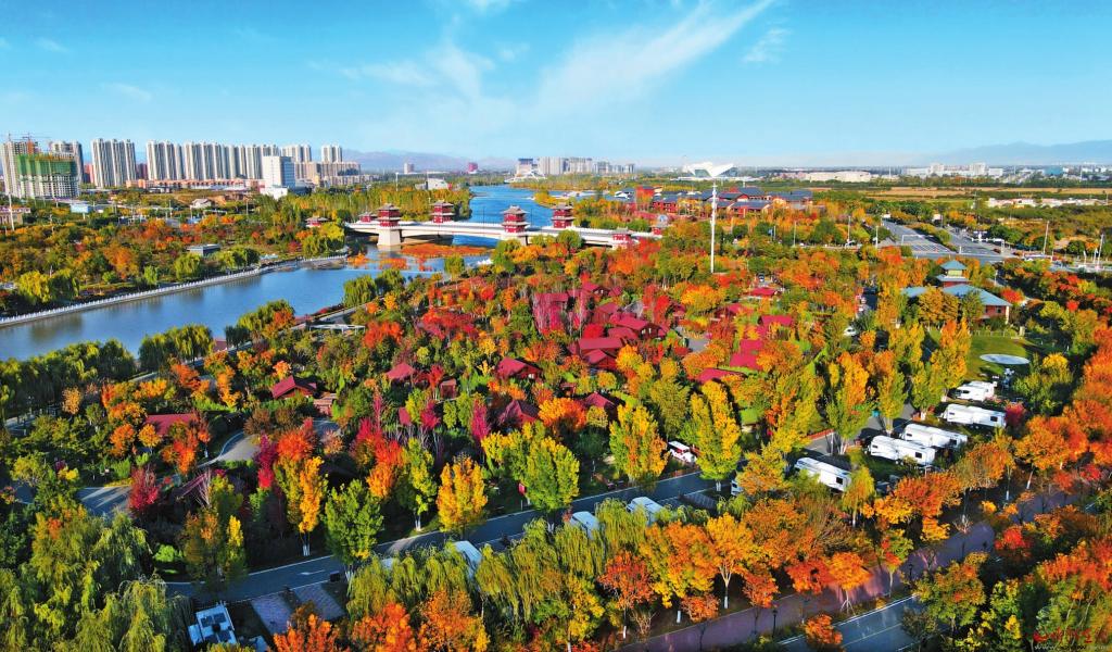 俯瞰忻州云中河房車營地,繽紛秋色撲面而來。(本報記者 張存良攝)
