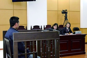 長城一日游的導(dǎo)游陳某,在車上收額外費用時遭到乘客申先生帶頭抵制。爭執(zhí)中,陳某在高速路上追打申先生,致其被車輛軋傷腳。昨天,陳某因涉嫌強(qiáng)迫交易罪,在昌平法院受審(如圖)。