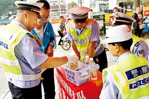 考試期間,市公安局交警支隊(duì)在各考點(diǎn)設(shè)置了便民服務(wù)點(diǎn),備好遮陽傘、雨傘、保溫水桶、礦泉水和考試專用的鋼筆、橡皮。便民服務(wù)臺(tái)還放置一個(gè)小藥箱,里面?zhèn)溆星鍥鲇?、防暑藥、藿香正氣水、感冒藥、腹瀉藥、速效救心丸、降壓藥等應(yīng)急藥品,以防考生及家長(zhǎng)急用。