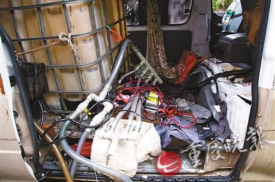 經(jīng)審訊,嫌疑人陳某曾因盜竊柴油被判入獄,在獄中認(rèn)識(shí)張某、張某某。3人出獄后,在瀘州買(mǎi)了一輛二手福田面包車(chē),經(jīng)過(guò)精心改裝并換上假牌照,往返于川渝兩地,在G93渝瀘高速各服務(wù)區(qū)專門(mén)盜竊貨車(chē)油箱里的柴油。偷油設(shè)備自動(dòng)化,改裝車(chē)內(nèi)裝著好幾個(gè)大油桶,用一根塑料管,通過(guò)一個(gè)油泵,把貨車(chē)油箱里的油直接抽到桶里。油泵電源由蓄電池提供,為避免發(fā)動(dòng)機(jī)聲音過(guò)大,油泵還用舊衣服層層包裹。馬力大的油泵,1分鐘就能把貨車(chē)滿滿一箱油抽光。為了更快抽油,嫌疑人甚至并聯(lián)4個(gè)大油泵。與以往拿著吸油管的小賊比,這樣的裝備偷油速度快10倍,比加油速度快幾倍。6月以來(lái),該團(tuán)伙僅在江津范圍內(nèi)就瘋狂作案20余起,盜得柴油5000余升,涉案金額數(shù)萬(wàn)元。陳某落網(wǎng)當(dāng)天,警方在面包車(chē)上查獲的1000余升柴油是陳某獨(dú)自在珞璜服務(wù)區(qū)連續(xù)作案5起盜得。