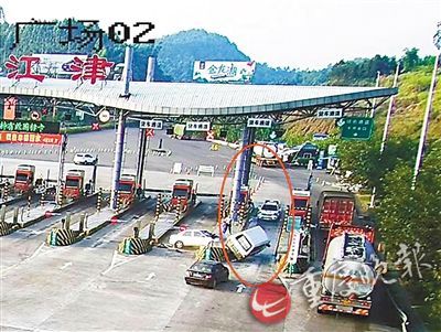 8月25日凌晨,民警接到線索,嫌疑車(chē)輛再次出現(xiàn)。民警馬上在渝瀘高速江津沿線進(jìn)行蹲守。早上7時(shí)42分許,嫌疑車(chē)輛緩緩駛?cè)胗鍨o高速G93江津收費(fèi)站,埋伏在收費(fèi)亭內(nèi)的民警,試圖在嫌疑人停車(chē)?yán)U費(fèi)時(shí)將其控制。不料對(duì)方見(jiàn)勢(shì)不妙,啟動(dòng)車(chē)輛準(zhǔn)備沖卡逃跑。這時(shí),另一隊(duì)蹲守在收費(fèi)站外的民警立即將警車(chē)開(kāi)到前方,把嫌疑車(chē)輛堵在收費(fèi)車(chē)道內(nèi)。嫌疑人駕車(chē)對(duì)警車(chē)進(jìn)行多次強(qiáng)烈撞擊,企圖撞開(kāi)警車(chē)后逃竄,但均未得逞。隨后,嫌疑人又猛烈倒車(chē),企圖撞開(kāi)后方社會(huì)車(chē)輛。