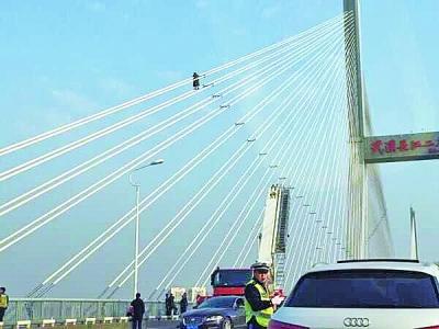 據(jù)武漢晚報(bào)13日?qǐng)?bào)道,12日下午1點(diǎn)半,一名六旬男子爬上湖北武漢長(zhǎng)江二橋斜拉索,離橋面約30米,聲稱要跳橋。民警、消防趕到現(xiàn)場(chǎng)救援,僵持一個(gè)小時(shí)后,消防出動(dòng)云梯施救,方才將輕生男子救下接回橋面。這起事故導(dǎo)致二橋和漢口、武昌多處道路交通擁堵近3個(gè)小時(shí),直至昨天下午5點(diǎn),交通才恢復(fù)正常。