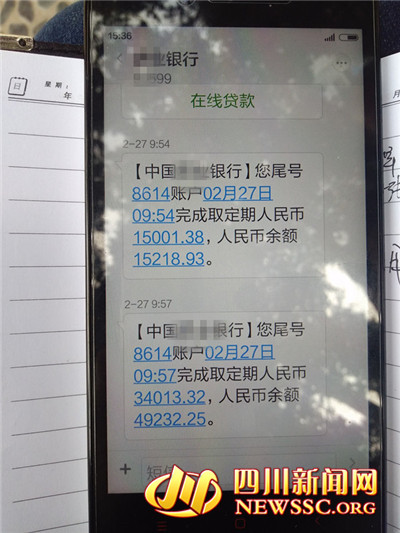 2月27日上午10時(shí)左右,羅大媽來到瀘州大山坪某銀行取定期存款。“這張卡是工資卡,經(jīng)常支取,究竟活期有多少余額,我也不清楚,但應(yīng)該不多?!绷_大媽告訴四川新聞網(wǎng)記者,自己有兩張定期存折,一張是1.5萬的,另一張是9萬。