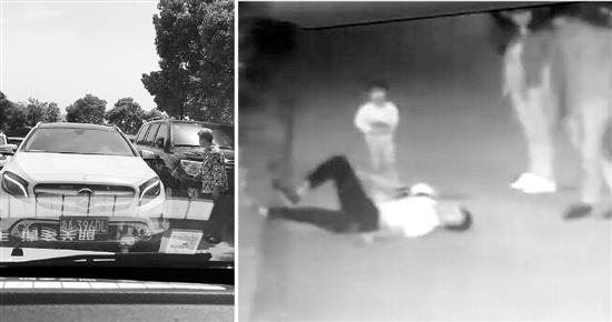 “沒想到,那女的二話不說,沖上來就很重地推了我一把。我想還手,又覺得不合適,就開始拿出手機(jī)來錄像取證,才錄了八九秒鐘,就有人過來把手機(jī)打掉了,中間還聽到他們家的小孩也在罵我。緊接著那男的就沖上來了,說了一句大致意思是‘你小毛頭一個,我一下就把你拎起來’,感覺他話沒說完,我就被他抓起來扔到地上了?!?/p>
