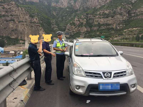 2017年7月11日16時(shí)許,高速二支隊(duì)九大隊(duì)民警王帥、孔祥昌巡邏至轄區(qū)鳳凰嶺隧道附近時(shí),發(fā)現(xiàn)一輛銀灰色尼桑轎車從警車旁邊疾馳而過,民警下意識(shí)一看,發(fā)現(xiàn)此車副駕駛窗戶伸出一些棍狀物體,存在著極大的行車安全隱患。