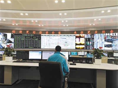 杭州九峰垃圾焚燒發(fā)電廠中控室,工作人員通過(guò)電子屏幕實(shí)時(shí)監(jiān)控各個(gè)區(qū)域。本版攝影/新京報(bào)記者 黃哲程