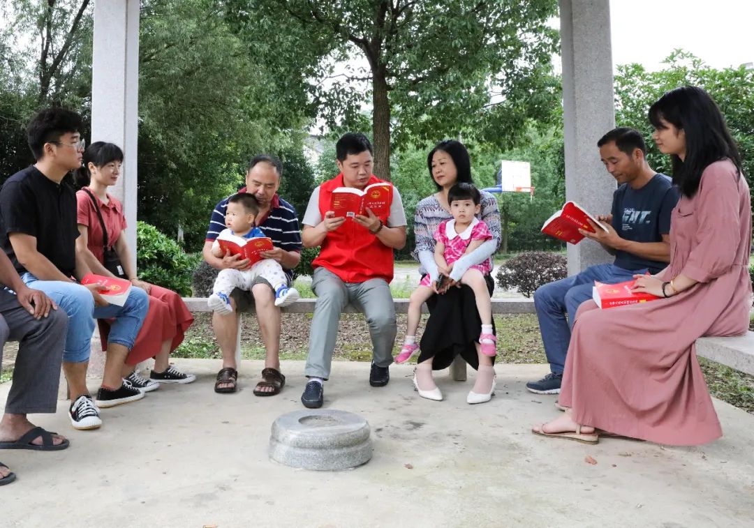 7月4日,浙江省長(zhǎng)興縣小浦鎮(zhèn)中山村,黨員志愿者為村民宣講民法典 徐昱/攝