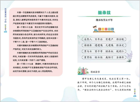 該書選取繼承權(quán)、高鐵霸座、高利貸、高空拋物等百姓經(jīng)常遇到和關(guān)心的熱點問題,結(jié)合法律知識與中華傳統(tǒng)文化,以三字一句的形式,配之經(jīng)典案例和四格漫畫,增強了普法宣傳的感染力。(孝金波、劉霞)