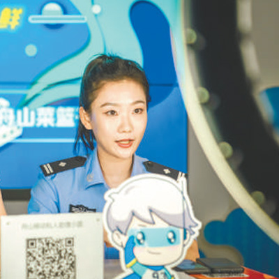 浙江省舟山市公安局反詐中心民警通過網(wǎng)絡(luò)直播傳授電信網(wǎng)絡(luò)詐騙防范知識(shí)。鄒訓(xùn)勇攝(人民視覺)