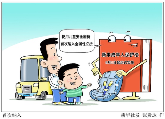 新修訂的《未成年人保護法》于今年6月1日起正式實施,明確提出未成年人的父母或者其他監(jiān)護人應當“采取配備兒童安全座椅、教育未成年人遵守交通規(guī)則等措施”,防止未成年人受到交通事故的傷害。