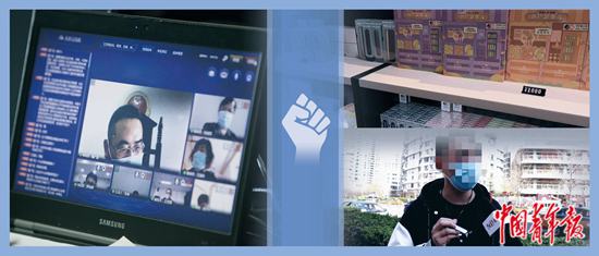 左:北京市東城區(qū)人民法院線上開(kāi)庭審理一起販賣合成大麻素類(“上頭”電子煙)毒品案。 北京市東城區(qū)人民法院供圖