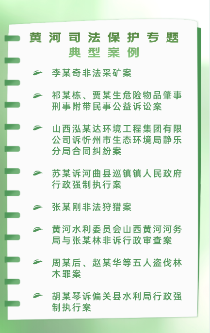 在3月9日“保護母親河日”之際,為深入貫徹黨的二十大精神,深入踐行習近平生態(tài)文明思想和習近平法治思想,在法治軌道上服務保障黃河流域生態(tài)保護和高質量發(fā)展,忻州市中級人民法院現(xiàn)將八個黃河司法保護專題典型案例予以發(fā)布。這批案例涉及黃河及汾河環(huán)境資源審判刑事、民事、行政及公益訴訟等多個領域,集中體現(xiàn)了忻州市兩級法院環(huán)境資源審判的鮮明特色和職能作用,全面展示了忻州法院以最嚴格制度最嚴密法治保護黃河生態(tài)環(huán)境的擔當作為。