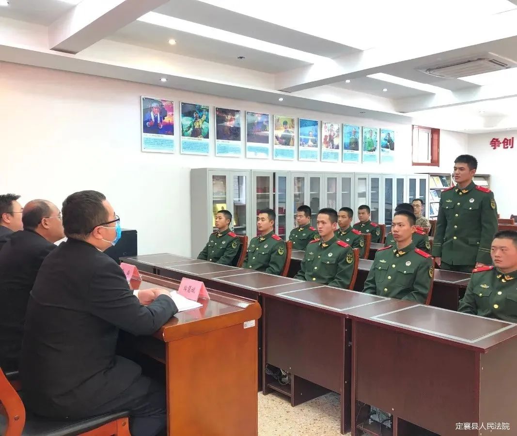 為切實(shí)提高部隊(duì)官兵依法維權(quán)的意識(shí)和能力,近日,定襄法院派出法官干警前往定襄縣武警中隊(duì)開展“送法進(jìn)軍營”活動(dòng),為武警官兵們送去法律關(guān)懷,提供司法服務(wù)。