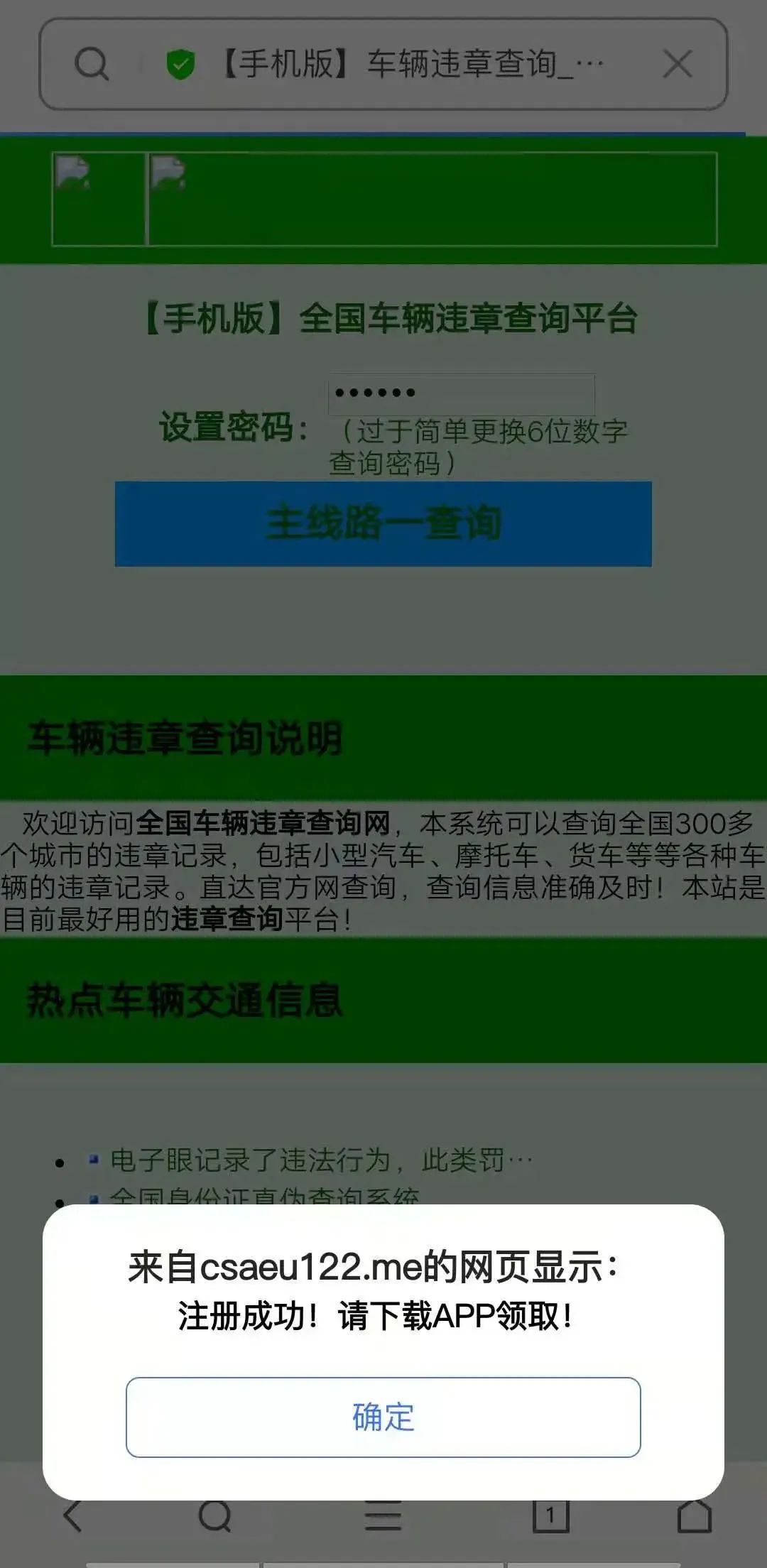 彈出的卻是山寨版違章查詢平臺
