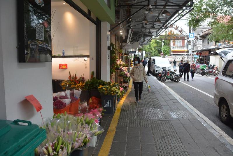 圖為2月8日記者拍攝的廈門溪岸路花鳥(niǎo)市場(chǎng),黃色實(shí)線內(nèi)側(cè)為允許商家“適當(dāng)經(jīng)營(yíng)外擺”的區(qū)域。新華社記者顏之宏 攝