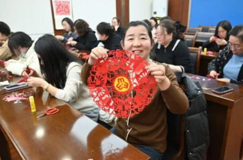 此次活動(dòng)特邀五臺(tái)非遺剪紙傳承人王森煒現(xiàn)場(chǎng)教學(xué),從折疊技巧到紋樣設(shè)計(jì),從鏤空雕刻到細(xì)節(jié)精修,干警們?cè)诶蠋煹闹笇?dǎo)下沉浸式感受剪紙藝術(shù)的魅力。紅紙翻飛間,一幅幅寓意幸福吉祥、展現(xiàn)女性力量的剪紙作品逐漸成型。指尖流淌的不僅是傳統(tǒng)技藝,更是檢察女性剛?cè)岵?jì)、匠心獨(dú)運(yùn)的精神底色。