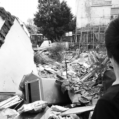 院里幾戶人家大多上了鎖,人去屋空。只有緊挨著93號(hào)院的幾間房,完全沒(méi)有鎖門(mén)的必要。除了還殘存的門(mén)窗和一道斜倚的斷墻,已經(jīng)和93號(hào)院的廢墟融為一體。