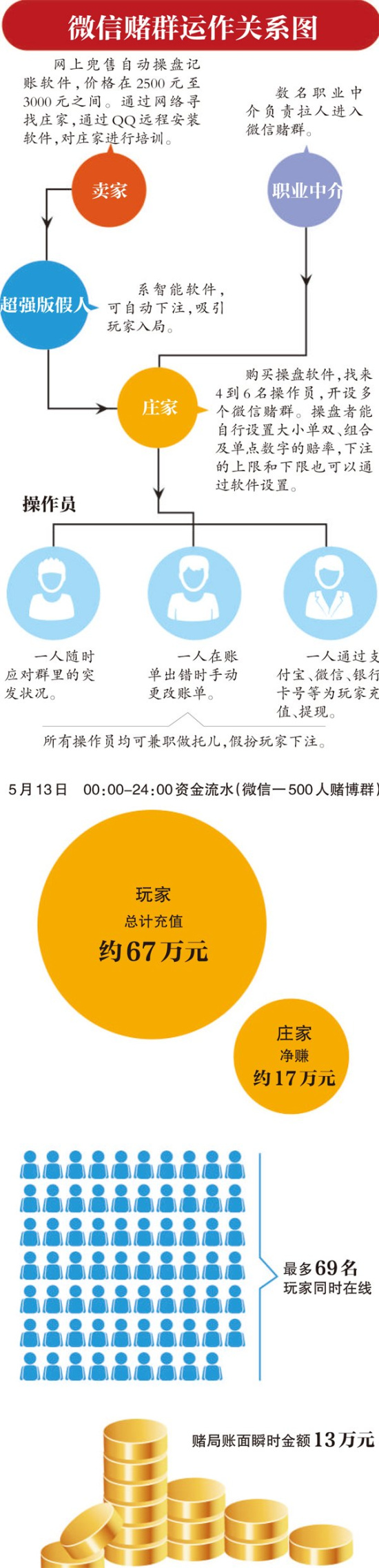 6月12日,某報(bào)記者臥底微信賭場的報(bào)道給人們揭開了“微信賭場”的可怕內(nèi)幕:開一局只需5分鐘,下注、開局、下注……賭局像車輪滾動,你甚至來不及眨幾下眼,也不知道錢輸給了誰,成千上萬賭資就已蒸發(fā)。一位賭徒這樣描述,“血淋淋的,押下去是一串沒有感覺的數(shù)字,玩完才發(fā)現(xiàn)輸了一大筆,這比現(xiàn)實(shí)中的賭場恐怖太多?!?/p>