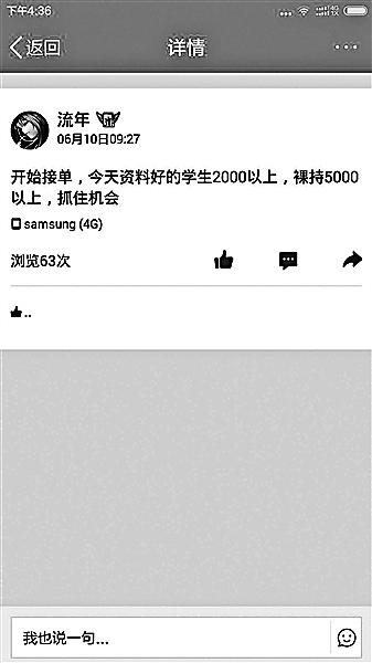 一名借貸行業(yè)人士則告訴記者,在網(wǎng)絡(luò)平臺(tái)進(jìn)行此類借貸的一般是私人貸款公司,借貸者一般是有負(fù)債經(jīng)歷的女生。