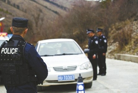 阿壩州警方正在執(zhí)行車(chē)輛盤(pán)查工作。