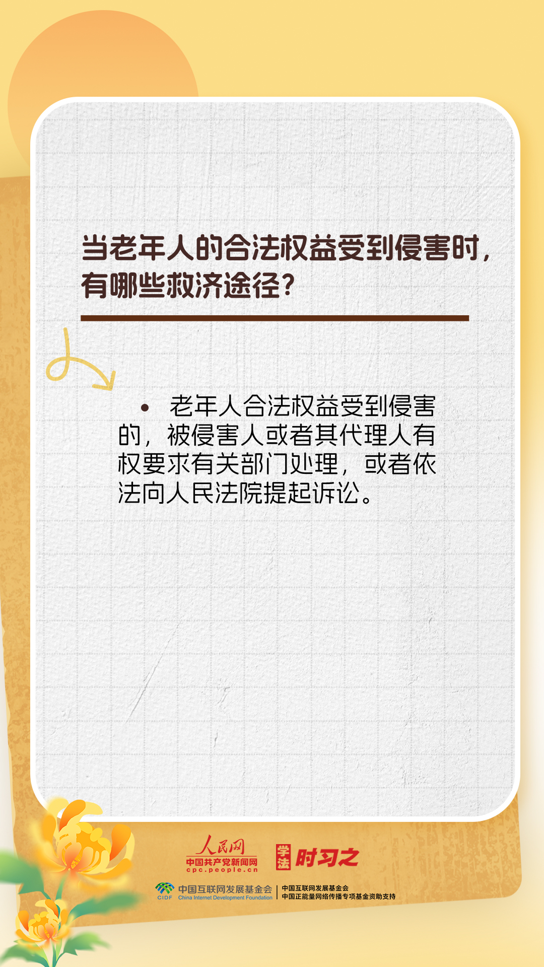 《中華人民共和國老年人權(quán)益保障法》的出臺進一步保障了老年人的合法權(quán)益,弘揚了中華民族敬老、養(yǎng)老、助老的美德。重陽節(jié),一起來了解老年人權(quán)益保障法的相關(guān)規(guī)定。