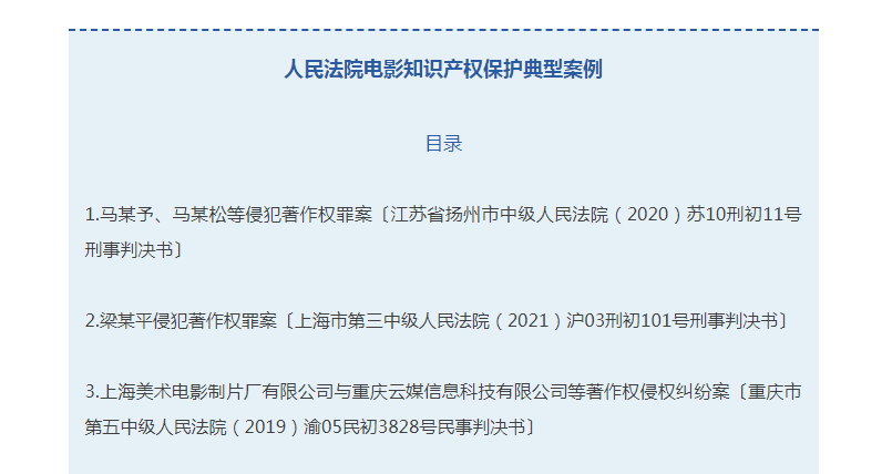 最高人民法院11月3日發(fā)布8件電影知識產(chǎn)權(quán)保護(hù)典型案例。