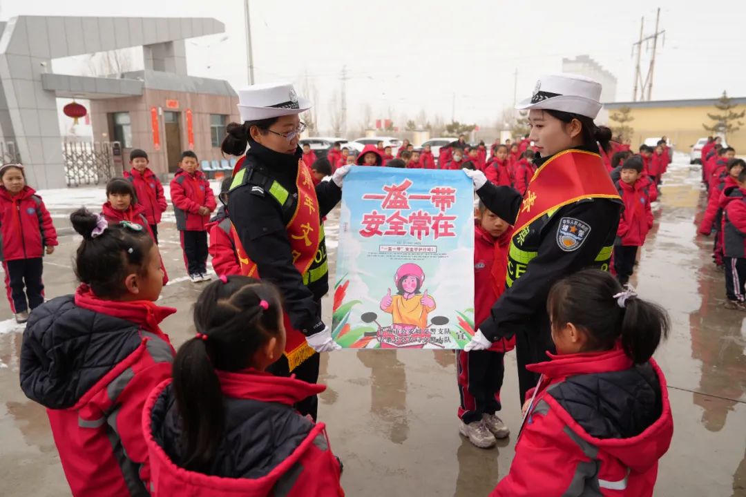 活動中民輔警通過演示交通手勢指揮操,展示“一盔一帶”交通安全海報,發(fā)放交通安全宣傳彩頁等形式,使學生們理解并熟記基本的交通安全知識,增強自身“知危險、會避險”的能力,做到遵章守法,文明出行。